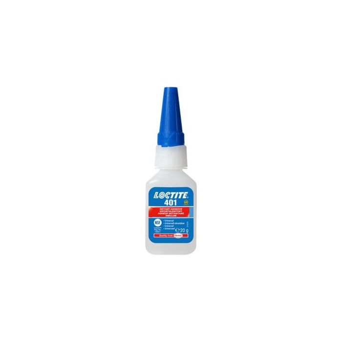 LOCTITE® 401 is a fast-fixturing instant adhesive designed for the assembly of a wide range of materials where uniform stress distribution and high tensile and/or shear strength are required. Using LOCTITE® SF 770 primer, the assembly of difficult-to-bond (PP, PE, PTFE) materials is possible. In addition, it is suited to bonding porous materials such as wood, paper, leather and fabric.