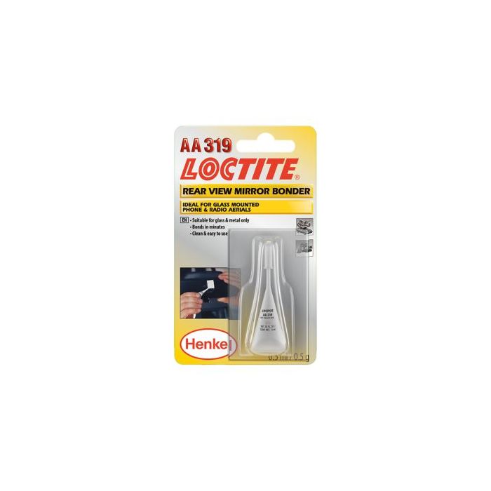 LOCTITE® AA 319 is a clear light amber, modified acrylic-based structural adhesive for bonding various materials such as glass, metal, ceramics and plastics. It's typically used for bonding rear-view mirrors onto glass. LOCTITE AA 319 cures when confined in the absence of air between close-fitting surfaces. To promote the curing speed and reliability, LOCTITE® SF 7649 activator is needed for surface preparation.